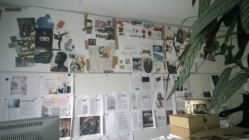 - Työpajoissa syntyneet konkreettiset asiat – esimerkiksi kuvia ja tekstejä leikkaamalla ja liimaamalla syntyneet miellekartat tai sanalistat – kannattaa pitää toimituksessa näkösällä. Ne muistuttavat siitä, mitä ollaan tekemässä.